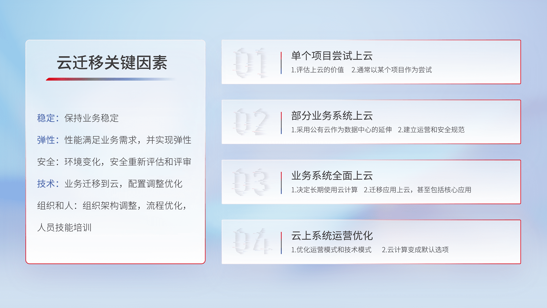 按照云平台规范对业务系统应用及数据进行规范标准化,匹配客户安全及应用需求配置策略,实现业务云上管理。
